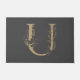 Elegant U Boho Floral Monogram Initial Grey Gold Doormat