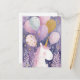 Charming watercolor birthday card featuring a graceful white unicorn with a pink mane and golden horn, surrounded by pastel pink, purple, and gold balloons on a magical starry background. Perfect for unicorn lovers, children’s birthdays, and whimsical celebrations.