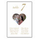 These white and gold wedding photo table numbers are both an elegant and unique way to add extra personalisation to your wedding. Serving as both decorative and functional, these table numbers are complete with a white background, table number, names of the guests, and your own photo cut into a heart shape. Enjoy!