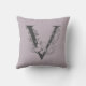 Elegant V Boho Floral Monogram Initial Lilac Grey Cushion
