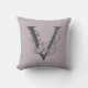 Elegant V Boho Floral Monogram Initial Lilac Grey Throw Pillow