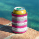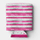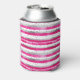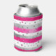 Elegant Valentine Pink Silver Hearts on Striped Can Cooler
