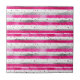 Elegant Valentine Pink Silver Hearts on Striped Ceramic Tile