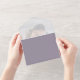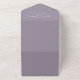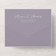 This design features a simple minimalist modern elegant lilac, with a QR code rsvp online website, a vellum photo picture overlay style, a lavender light purple romantic colours, a stylish trendy calligraphy script font, a modern guest response reply online, tri-fold wedding invitation template, an elegant seal and send design, a photo wedding invitation template, a simplistic solid colour white text