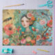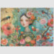Large Elegant Vibrant Colourful Floral Girl, Bird & Butterfly Decoupage Art Collage Tissue Paper sheets for crafting and gift wrapping.