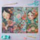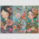 Large Elegant Vibrant Colourful Floral Girl, Bird & Butterfly Decoupage Art Collage Tissue Paper sheets for crafting and gift wrapping.