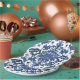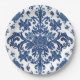 Elegant Victorian Damask Flower Pattern Navy Blue Paper Plate