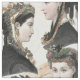Beautiful vintage french fashion plate illustrations of beautiful women in hats with flowers.