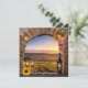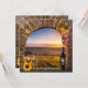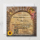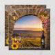 A romantic wedding invitation with a wine theme, featuring a Roman arch with grapes, wine glasses, a wine bottle and sunflowers overlooking a gorgeous vineyard landscape. On the back the texts are written in a playful way covering a stone wall. The QR code is optional and can be easily customised to link to your own website. Beautiful for a wine themed, winery or vineyard celebration.