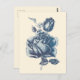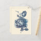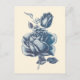 Beautiful botanical vintage illustration of a rose and bud in blue tones on light cream beige background for birthday, Mother's day, Valentine's day