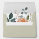 Elements: watercolor flowers, roses, leaves, greenery, foliage, lively serif font. Colours: red, pink, blush, peach, orange, green, aqua, teal, gold, brown & purple. Themes: modern, classic, vintage inspired, elegant, botanical, boho, bohemian, foliage, garden, winery, outdoor wedding, spring, summer, Edwardian, Victorian, antique, whimsical. Collection: Elegant Vintage Boho Red Orange Grey Wedding Collection. Product Type: Envelope