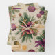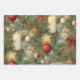Wrap your holiday gifts in timeless charm with this vintage Christmas wrapping paper set! This set of three flat sheets features spruce boughs, flickering candles, garlands, stars, and ornaments on a natural woodgrain background, rendered in forest green, deep burgundy, and antique gold for an elegant, nostalgic look.