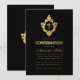 Elegant Vintage Confirmation Black Faux Gold Crest Invitation