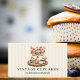 Elevate your bakery's branding with this charming and vintage-inspired cupcake business card. The front features an illustration of a delightful cupcake tier stand with beautifully decorated treats, exuding a sense of nostalgia and sweetness. The soft striped background in neutral tones adds a touch of sophistication, making it perfect for a boutique bakery or a home-based baking business.