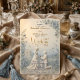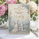 Share your love story with a romantic vintage-inspired design featuring an elegant dusty blue and ivory palette, faux 3D florals, and classic typography.This classical composition centres a beautifully framed proposal scene against a rolling countryside landscape, rendered entirely in soft ivory, cream, and muted slate blue tones. The layout utilises formal hierarchy, placing printed modern calligraphy gracefully atop a simulated carved floral border, creating the visual illusion of directional light hitting intricate bas-relief plaster work.This is a flat printed image with a faux 3D embossed and faux gold foil effect, not actual raised material.