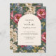 Elegant wedding invitation featuring vintage floral pattern background. Personalised with your details of your special day for custom wedding invitations.