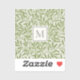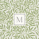 Elegant vintage William Morris green willow leaves pattern with a grey monogram on a cream background.