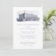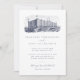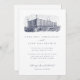Impress your guests with this elegant wedding invitation by JessicaAmber. This classic card features a detailed vintage illustration of a large hotel. You can replace this with an image of the destination of your wedding (transparent or white background preferred). Elegant dark blue lettering displays the bride and groom names, and details of the wedding, including the location, date and time. This invitation is preferred for when the couple are hosting the event themselves.
