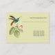 Customisable Elegant Vintage Hummingbird Appointment Business Cards. Currently customised for an aesthetician but can be easily changed to your title. Background colour can also be changed. Add your own details easily in minutes to these beautiful vintage inspired elegant business cards. Next appointment time is on the back, a great reminder for your customers. Image of a hummingbird on a flower.