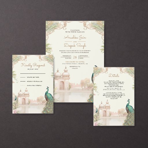 Elegant Vintage Peacock Indian Palace Wedding RSVP Card