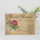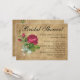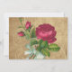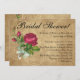Classic and Elegant Vintage rose painted in oil, on an aged canvas look background. Perfect bridal shower invitation for a nostalgic theme in fuchsia red and tan/brown tones. Magenta / Fuchsia / Dark Pink Garden Shrub Rose with buds and green leaves.