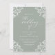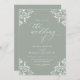 This recently updated sage green wedding invitation is classy and elegant. It features ornate vintage corners with vintage calligraphy. It's perfect for an elegant and classy sage green wedding.