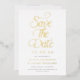 This elegant save the date card features a classic white background with hand-lettered script "Save the Date" in raised foil and classic typography in grey. On the back is your full frame (aka full-bleed) photo, which can also be removed if desired. This design makes an elegant and chic first impression for your wedding! Background, text, and foil colors are customizable.