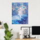 This beautiful poster features a seahorse against a blue ocean waves background.