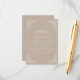 This taupe wedding details card offers a timeless, neutral design with elegant white filigree accents in each corner. The modern calligraphy header paired with classic serif text ensures both style and readability. The soft taupe background makes it ideal for minimalist, rustic, bohemian, or neutral-toned wedding themes. Perfect for providing your guests with accommodation details, travel info, or a link to your wedding website.