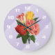Elegant Tulips with a Vintage Touch clock. Gorgeous lavender background, very nice and chic.