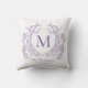 Elegant Vintage Violet Floral Crest Monogram Throw Pillow