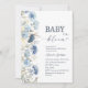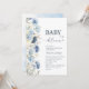 Elegant Watercolor Baby in Blooom blue flowers B Invitation