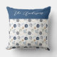 Transform your home for the holidays with this elegant and charming throw pillow. This beautiful design features a watercolor pattern of classic Christmas ornaments, bells, and festive foliage in a soothing palette of navy blue, dusty blue, and soft gold and cream. The timeless, slightly rustic holiday style is perfect for blending with farmhouse or traditional winter decor.