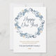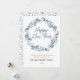 Elegant Christmas card featuring a blue watercolor wreath. It can be personalised with your sentiment and family name, as well as the year. The back of the card features a coordinating pattern and a space to add your own photograph.