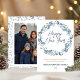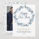 Elegant Watercolor Blue Greenery Wreath Photo Holiday Card