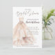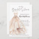 This elegant bridal shower invitation features a beautifully hand-painted watercolor wedding dress in soft blush tones, draped gracefully with delicate folds and a romantic bow. The classic white background enhances the sophisticated and timeless feel, while the mix of modern script and refined serif fonts adds a stylish touch. Perfect for a chic, feminine, and classy bridal shower, this invitation is ideal for brides who love a soft, romantic aesthetic. On the back, a matching watercolor champagne bottle in the same delicate hues adds a festive and celebratory touch to the invitation.