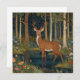 Loose yourself in the enchanting allure of this elegant bohemian woodland deer artwork, where nature's grandeur meets timeless artistry. Set against a lush forest backdrop, this exquisite piece captures the serene beauty of a verdant woodland, rich with intricate details of flora and towering trees. The deer, standing majestically in a tranquil body of water, observes its surroundings amidst a tapestry of lush foliage, embodying the harmonious blend of botanical organic forms and nature's splendour. In the distance, the majestic mountains rise, completing the idyllic scene. This piece is a perfect homage to the elegance and intricacy of Art Nouveau design, offering a timeless window into a world where nature and art intertwine.
