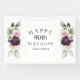 Celebrate a special milestone birthday with this beautifully feminine banner that has floral borders in burgundy and pink roses on each side of the elegantly placed text. Colours include pale blush pink, deep burgundy red and plum mixed with ethereal greenery and tiny white accent flowers. Personalise the text template with your information. Shown here for celebrating a 90th birthday, you can edit the age to any age birthday!