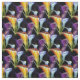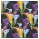 This elegant fabric features a striking watercolor design of calla lilies in rich shades of purple, gold, and soft blue. The dark background enhances the vivid colours, giving the pattern a luxurious, dramatic appeal. Perfect for sewing projects that require a touch of sophistication, from custom dresses to stylish home décor. The artistic brushstroke style adds depth and texture to the floral elements. A beautiful choice for those seeking bold elegance in their fabric creations.