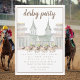 Set the tone for a classic race-day celebration with this watercolor derby-inspired party invitation, featuring elegant horses racing in front of an iconic trackside building. The soft, painterly style captures the excitement of the day while offering a timeless, Southern-inspired look perfect for stylish entertaining.