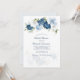 Customise this bridal shower invitation card by clicking the "Personalise" button above. The card features a modern elegant chic dusty blue flowers with white, light blue, and olive green bloom.