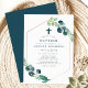 Elegant Watercolor Eucalyptus with Cross Baptism Invitation