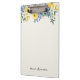 Elevate your workspace with this elegant floral clipboard. Featuring a watercolor-style design of yellow, white and blue flowers, the clipboard adds a colorful burst of botanical charm to the day. Personalize with a name in a flowing script font for the finishing touch. Whether you’re organizing a meeting or checking off your daily goals, this pretty clipboard combines style and function.