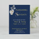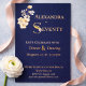 Elegant Watercolor Floral Navy 70th Birthday Rose Gold Foil Invitation. Celebrate a special 70th birthday with this modern invitation, featuring soft botanical florals, refined typography, and a graceful arch silhouette. Designed with a navy background with delicate grey and blush floral accents and gold foil, this invitation offers a timeless, modern look that feels both celebratory and sophisticated. Perfect for dinner parties, cocktail evenings, or any milestone celebration, this design is ideal for those who appreciate understated beauty and thoughtful detail. Personalize with your event information