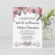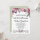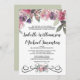 Elegant floral display and Victorian flourish create a beautiful spring or summer wedding invitation. Pink and purple roses with lush greenery.
