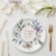 Introducing our minimalist and trendy wedding Paper Plates, featuring a pretty flowers in light purple and green leaves and more, with an elegant background , creating a clean and stylish look for your special day.