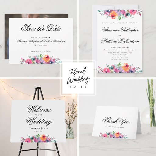 Elegant Script Watercolor Floral Wedding SuiteDesigned by Laura C.