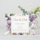 Introducing our minimalist and trendy wedding Save the Date, featuring a pretty flowers in light purple and green leaves and more, with an elegant background , creating a clean and stylish look for your special day.