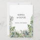 This is a wedding invitation with elegant watercolor green leaves, signature style names and chic typography for a boho style that is modern and stylish.