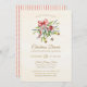 A charming Christmas dinner invitation featuring watercolor greenery, pomegranates, and a festive red bow. Its warm, elegant layout sets the perfect tone for holiday gatherings. Easily personalize all text to create a welcoming, memorable seasonal invite that reflects your style. Back with a red, striped pattern of watercolor ribbons. © y.BEE PAPERIE #ZazzleMade #redpomegranateholidayinvitation #greenerychristmasinvitation